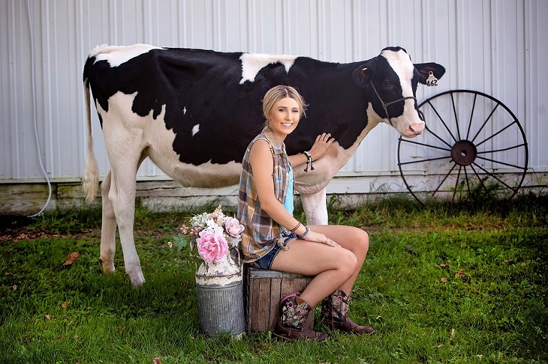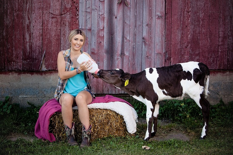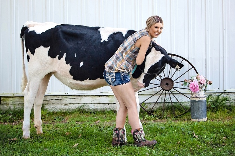 I found a day that worked for those that so kindly offered to let us come to their farms and take photos with their cows. I told Court I had a surprise day planned for her and only told her what to wear. We lucked out and got one of the 90 degree days, it was beautiful outside. We picked Court up and head out to the first spot. She was so confused when we pulled into our first stop, Greg and Heather Hale’s farm. I had asked Heather to keep the cow slightly hidden, so we had a bit of a walk to the cow. Even though the cow was in plain sight as we got closer, it took a bit for Court to see the cow. lol