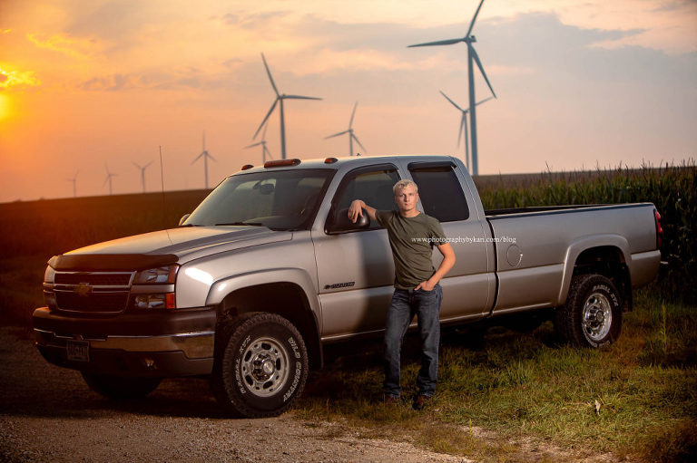 For Lucas’s second part of his session, he had picked out a gravel road with the windmills, corn, and the sun setting behind. Such an awesome spot. And making it even better, all the changes in the weather we had that. The evening ended up giving us so many different and beautiful skies. It was so hot, crazy humid, cloudy, windy, then it rained a little, and then the sun came out just before sunset. It was perfect! We also were able to get some family photos, but I will have to share another time.